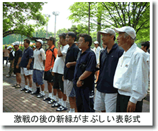 (東京都市町村テニス選手権大会は、各市町村のチャンピオンが参加し都下のNO1を決めるトーナメントです。)